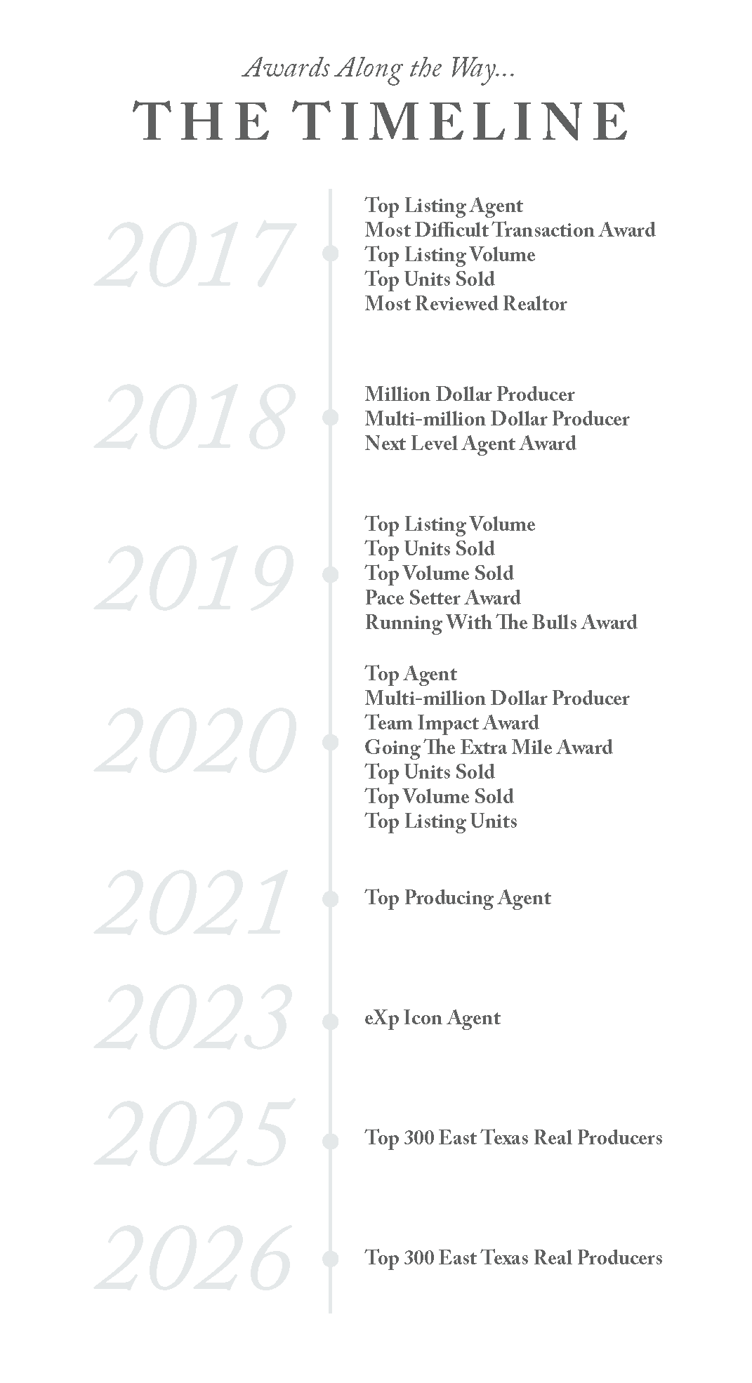 Relationship Driven. The clients that I have been blessed to work with are not just numbers, statistics or another transaction. They are individuals with hopes, dreams and plans and I have the incredible opportunity to guide them through the process of both buying and selling properties. My God given gifts include creating color schemes, staging, interior design and strong home marketing skills. These skills paired with a servant’s heart for building relationships has created a career built almost entirely on client referrals. Clients gain not only a strong, experienced realtor but a partner who will always put their best interest at the forefront of every transaction. Highly Favored. In 6 short years, I have been overwhelmed by the favor and blessings that God has bestowed upon my life and my business. Hundreds of successful transactions, consistent Multi-Million Dollar Producer awards, opportunities to teach and train other realtors, life-changing opportunities...I am forever grateful.